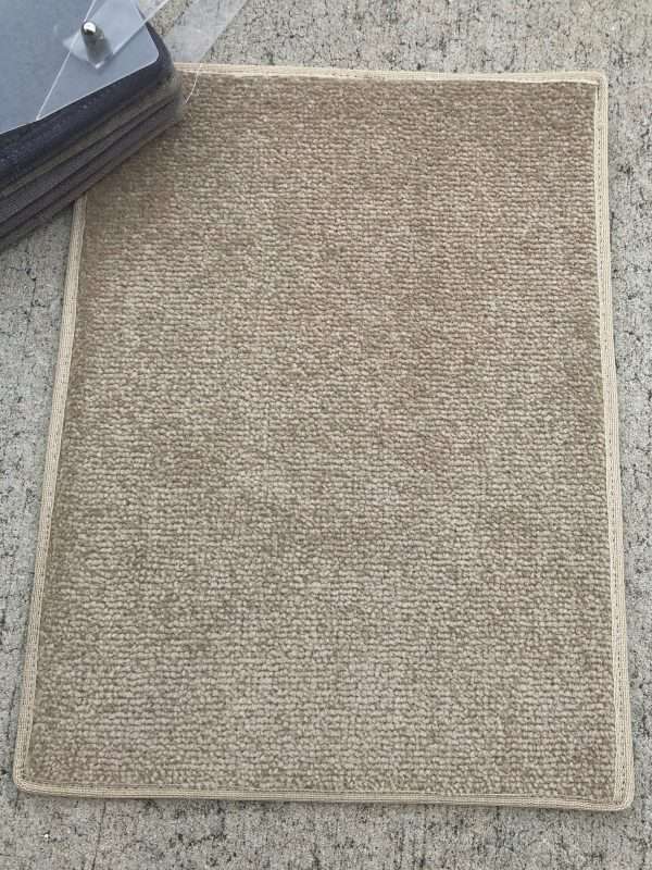 Itnasav – Raw Cotton – Sandstone/Beige coloured carpet – Colour Number 6-1101. Type: Low loop pile. Carpet Fibre: 100% BCF Classion Olefin (UV Stabilsed), Colouration 100% Solution Dyed. Rating: Residential Heavy Duty. Abrasive, wear, colour fast, anti-shock. Maximum width 2.66 metres. Can make Rugs and Runners from this off the roll carpet to any length with a maximum width of 3.66 metres.